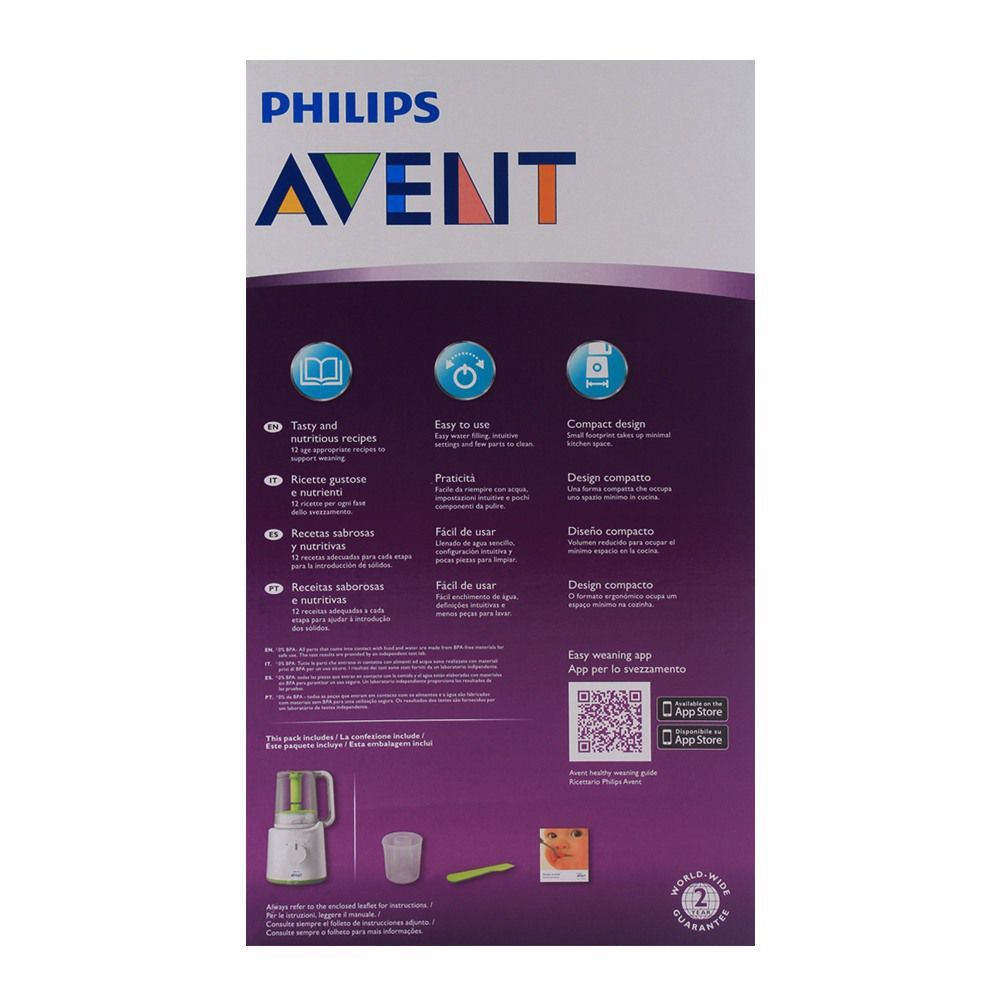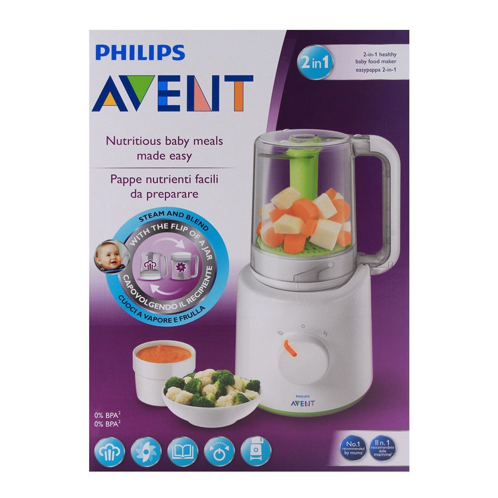 Create deliciously healthy baby meals with perfect ease and convenience right at your home with this all-in-one steamer and blender from Philips. Simply add foods like fruits, vegetables and meats to the steamer and let it do its magic. An automatic beep will alert you when the food is cooked just right. The best part is you can now blend this food simply by flipping the jar. Choose from different blend speeds and styles to achieve a desired consistency depending on your child’s age. Go with a smoothie texture or let the blended food be chunkier for some healthy chewing.