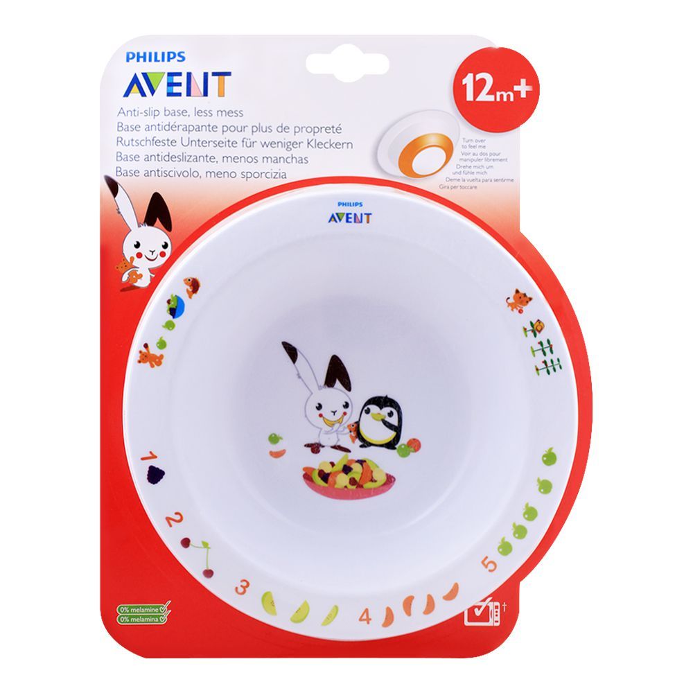 Feed your baby with fun filled, colorful story-telling designed bowls, Avent Feeding, Bowl, 12m+, Rabbit/Penguin, SCF704/00. It keeps your child engaged while having meals making it more enjoyable. It is designed with colorful and attractive pictures on it by the help of child specialists. It makes your child get interested in having healthy meals every day. Its anti-slip base prevents food from spilling and creating a mess. Its round sides ensure that the food is easily scooped in the spoon without any difficulty.