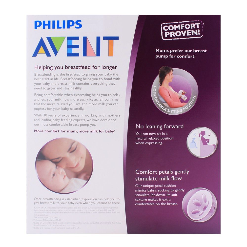 To all the new mothers, we congratulate you on your motherhood. Avent manual pump natural SCF330/20 has come to your help. Breastfeeding is not an easy task, you cannot carry your child in your arms especially when you have all the daily chores to do. Avent manual Breast pump Natural SCF330/20 allows you to be more comfortable and naturally helps your milk to flow in the bottle. This will surely make you and your baby happy.