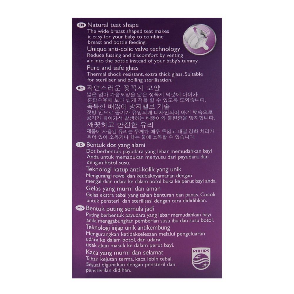 Have you caught your hands on the new natural glass feeding bottle 120ml? No! then you’re missing out the most important item of the baby care product by Philips. The petal-soft nipple and the spiral design assures you of the quality. The glass is durable which saves your money and it is compatible with other Philips feeding bottles, now what better deal we can get than this. It has a wider neck, an easy to hold body and a perfect latch on qualities.