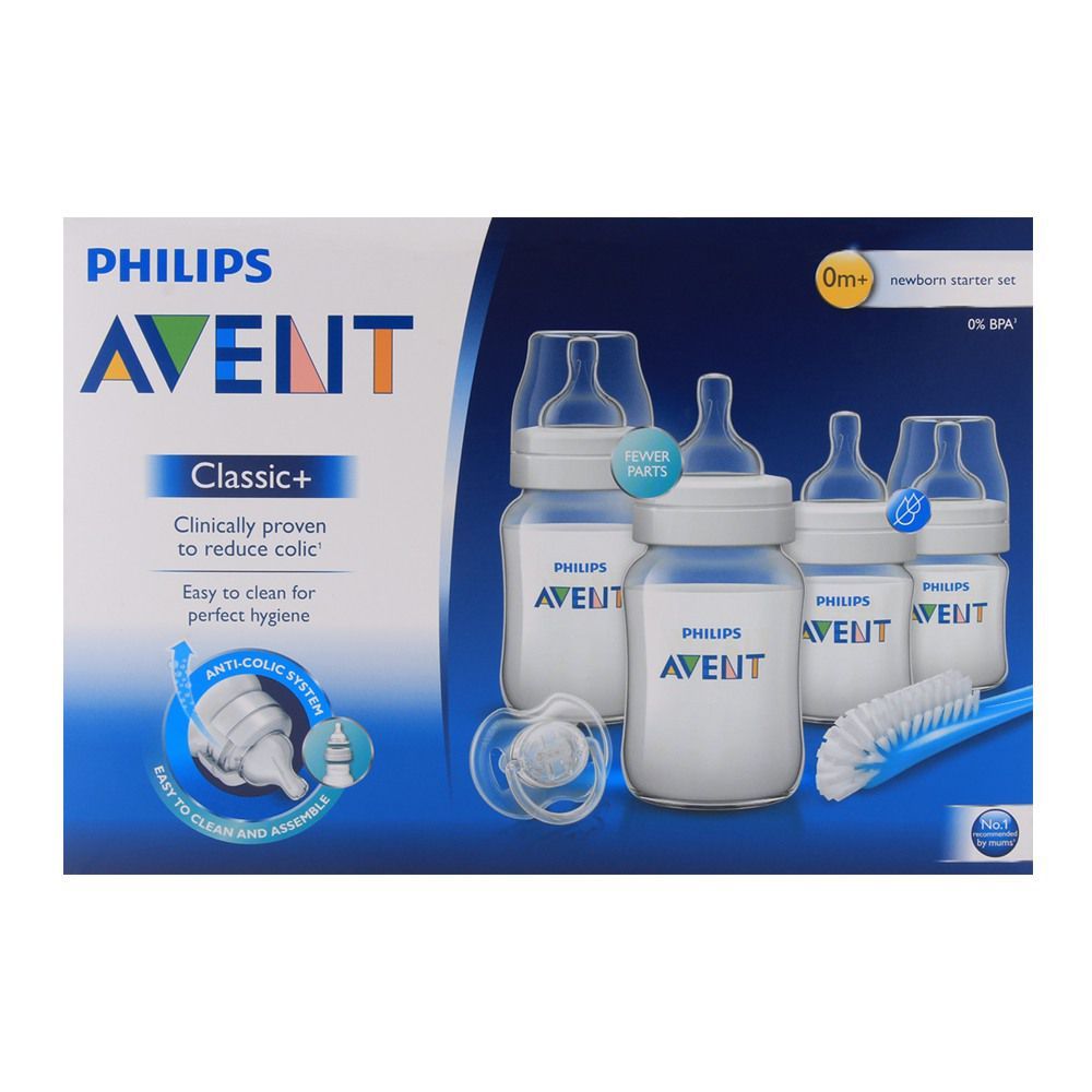Get the right kit to ensure healthy and proper feeding and care of your baby. This newborn starter set from Philips Avent carries all the right tools for you. It includes 4 feeding bottles from the Avent Classic+ lineup as well as a pacifier and a bottle and nipple brush. The feeding bottles feature a wide neck which makes them easy to clean using the bottle and nipple brush. The nipples come with anti-colic valve to prevent fussing and colic in the baby. All components are incredibly easy to wash and keep clean.