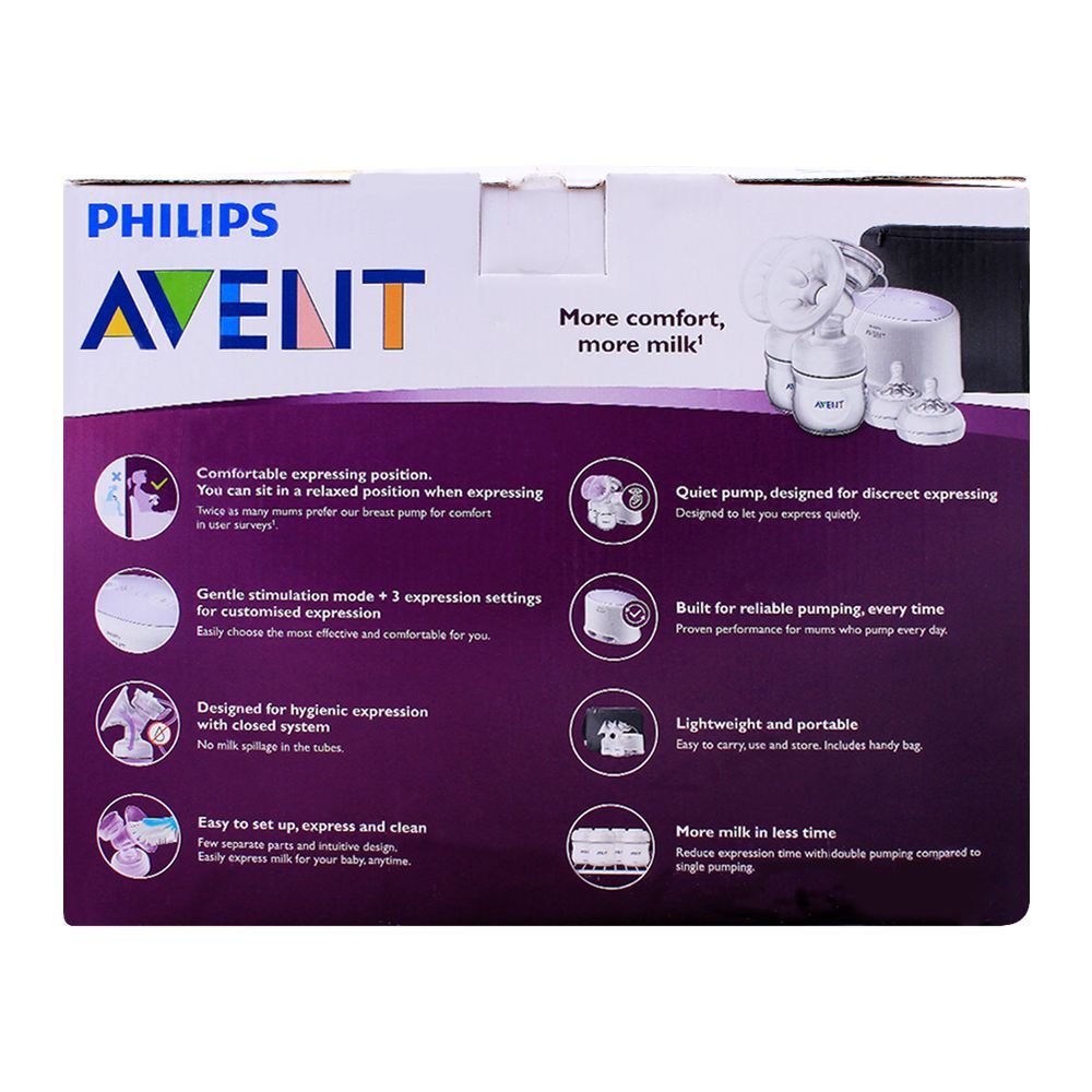 Are you a working lady? Worry not, you can still provide your baby his feed on time with Avent Ultra Comfort Double Electric Breast Pump, 0m+, SCF334/31. Its soft massaging cushion provides with comfortable and gentle stimulation for easier milk flow. It is made to relieve your worry about feeding your baby when you are not around. The double pump helps storing more milk in lesser time with comfort. It has a quiet motor that prevents making sound. It is easy to set up, use and clean. According to your own preferences, you can set it to work through its simple setting options. Sit back, relax and provide your baby with hygienic milk anytime, anywhere, when you are not around.