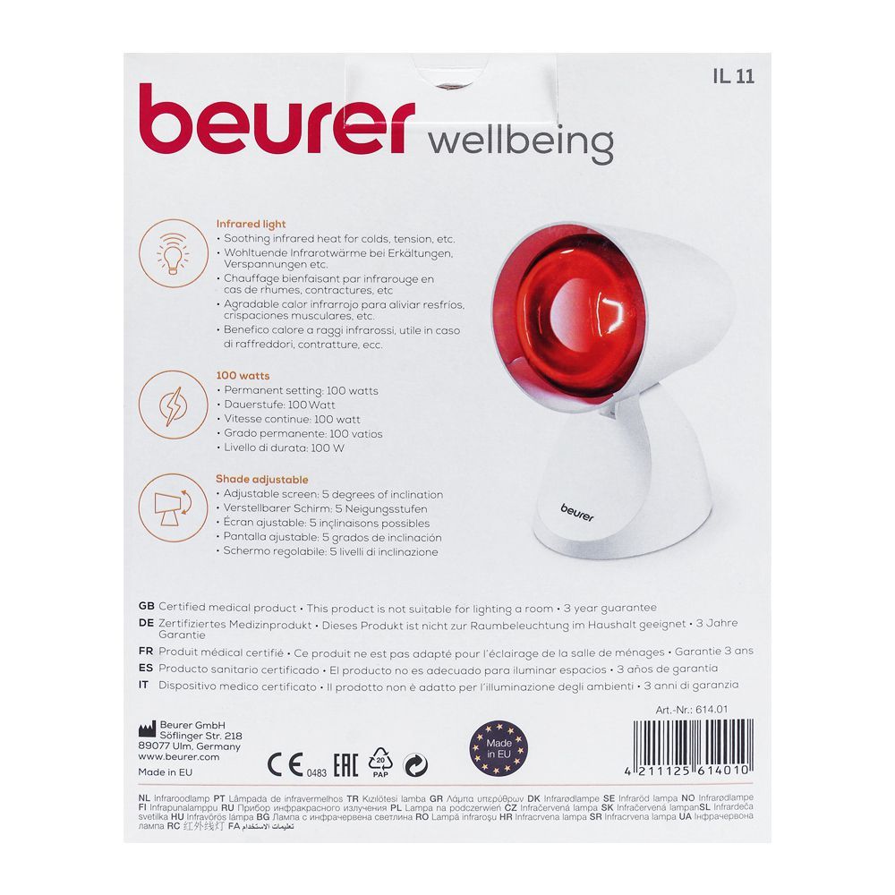 Get a relaxing heat therapy for tensed muscles and pain with Beurer Infrared Lamp, IL 11. It is an effective therapy for muscle strain and makes you feel better in bad cold, and flu days. It is medically recommended for use in case of severe aches and muscle stiffness. When you are tired and want to get active back again, you can get relief by using it. Its infrared radiations help with the healing process without the use of any medication. Help yourself feel relaxed and stress free.