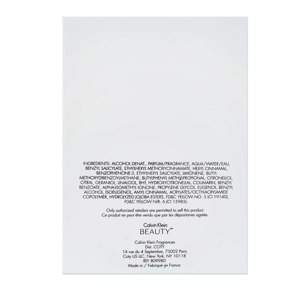 Calvin Klein's Beauty Eau De Parfum is for older women looking to hold up elegance and pride. This fragrance is made with the strong stress relieving scents coming from natural essences. The long lasting formula's heart and soul is made up with aromatic floral and woody notes. The powerful top note can be interpreted as freshly picked neo lily flower. Ambrette seed's spicy warmth takes over it soon while the intensely pleasing trail of cedarwood leaves itself behind for a long time. Bottled in a curvy glass bottle and accessorized with silver metal, this perfume counts in as an ideal décor piece for dressing table tops.