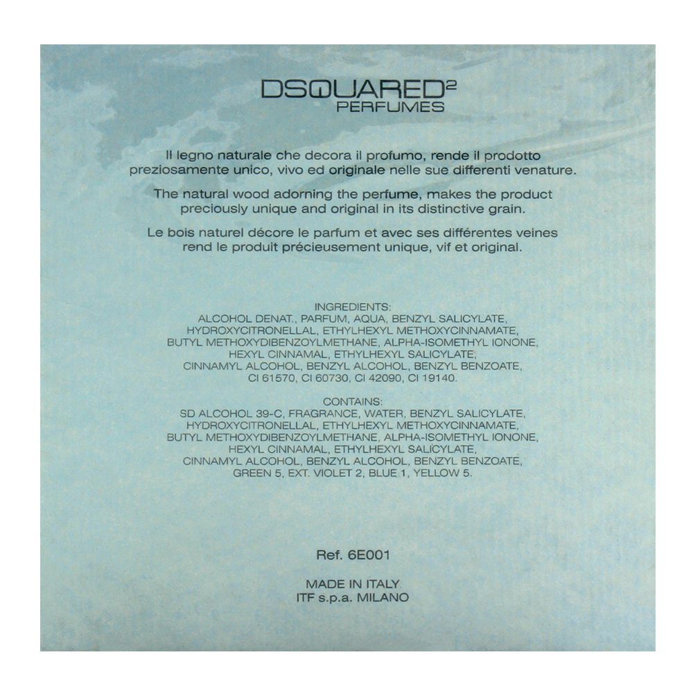 Dsquared Wood She Crystal Creek Wood Edp 50ml comes with the aquatic, floral, and woody fragrance. It's a unique choice for women that love nature and clear notes. The composition is based upon three main accords - woody notes, aquatic notes and crystal notes. The base consists of white wood, amber, vetiver, and sandalwood. The clear notes of crystal clear water, violet, violet leaf, and stream represent the heart.
