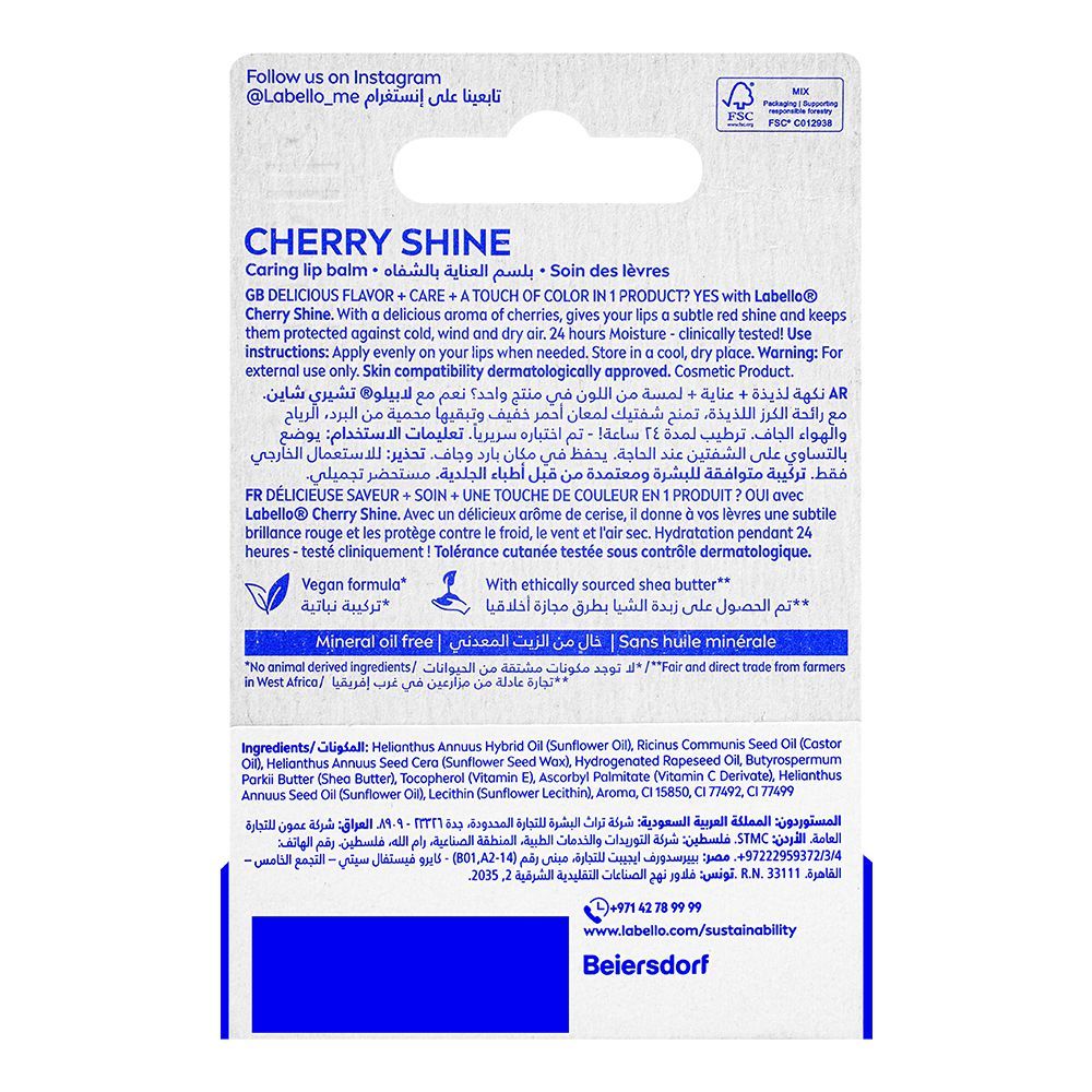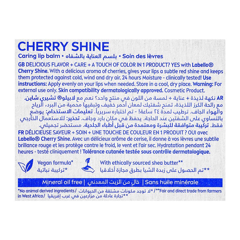 Experience a lasting moisturization and take care of your delicate lips with Labello Cherry Shine Caring Lip Balm. It is made to nourish your lips and keep them hydrated. Its long-lasting hydrating formula provides a lasting color and shine ensuring protection against dryness. It is formulated to make your lips stay soft and smooth. Labello contains color pigments that gives an appealing red shine and feels like sweet cherry. It is dermatologically tested and approved for skin compatibility. You can easily carry around the stick anywhere in your purse and make sure that your lips never go dry and colorless.