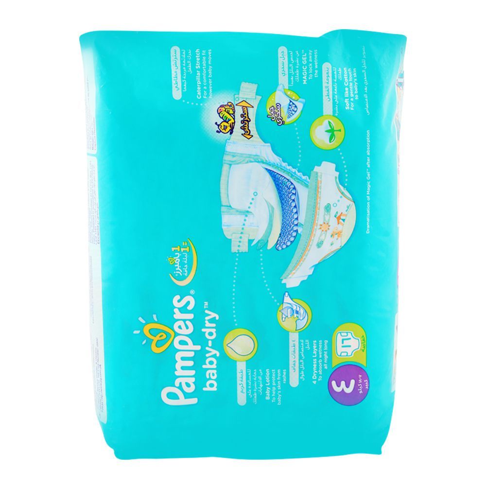 Pampers baby-dry have extra absorbing channels and a magic gel in the middle that allows the baby to sleep peacefully throughout the night. Moreover, the diaper contains a thin layer of baby lotion, which prevents skin rashes. Rest assured you will not have to wake up in the middle of the night to your baby crying and needing a change.