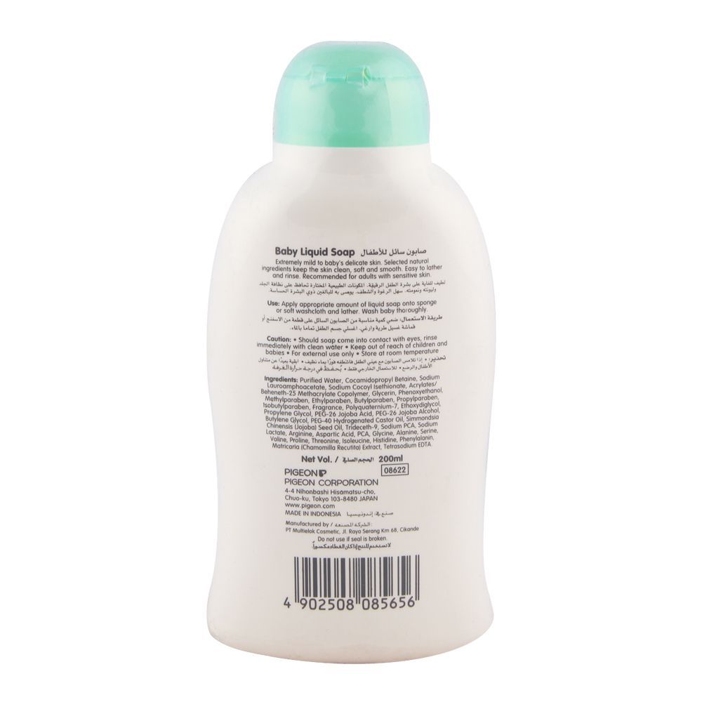 Pigeon Baby Liquid Soap 200ml Indo contains natural ingredients, making it a safe choice for your baby. Babies have sensitive skin, which means you cannot use just any soap to clean them. You need a soap formulated especially for their skin. If you are searching for a premium quality liquid that effectively cleans your baby, removing germs from their skin while softening and soothing their skin at the same time, get this liquid soap. Make the right choice for your baby by getting a soap that comes recommended by most mothers. When you use this liquid soap, you will become a fan too.