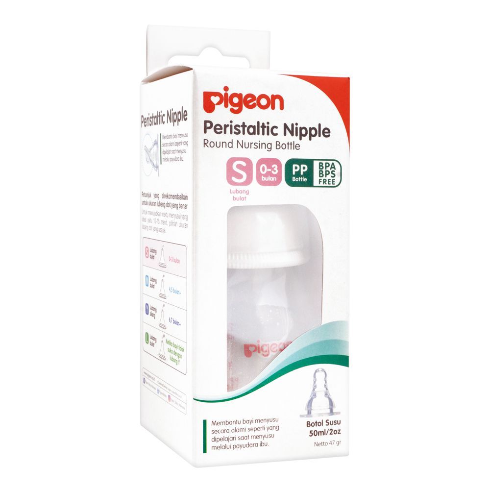 A top choice of mothers, the Pigeon Peristaltic Nipple Round Nursing Bottle 50 ml A-26284 offers natural and comfortable feeding for the babies. Designed and shaped to make it easy for babies to hold the bottle, it saves the mothers from the hassle of spilled milk. The high-quality BPA-free material ensures baby's safety and gives the mother peace of mind.