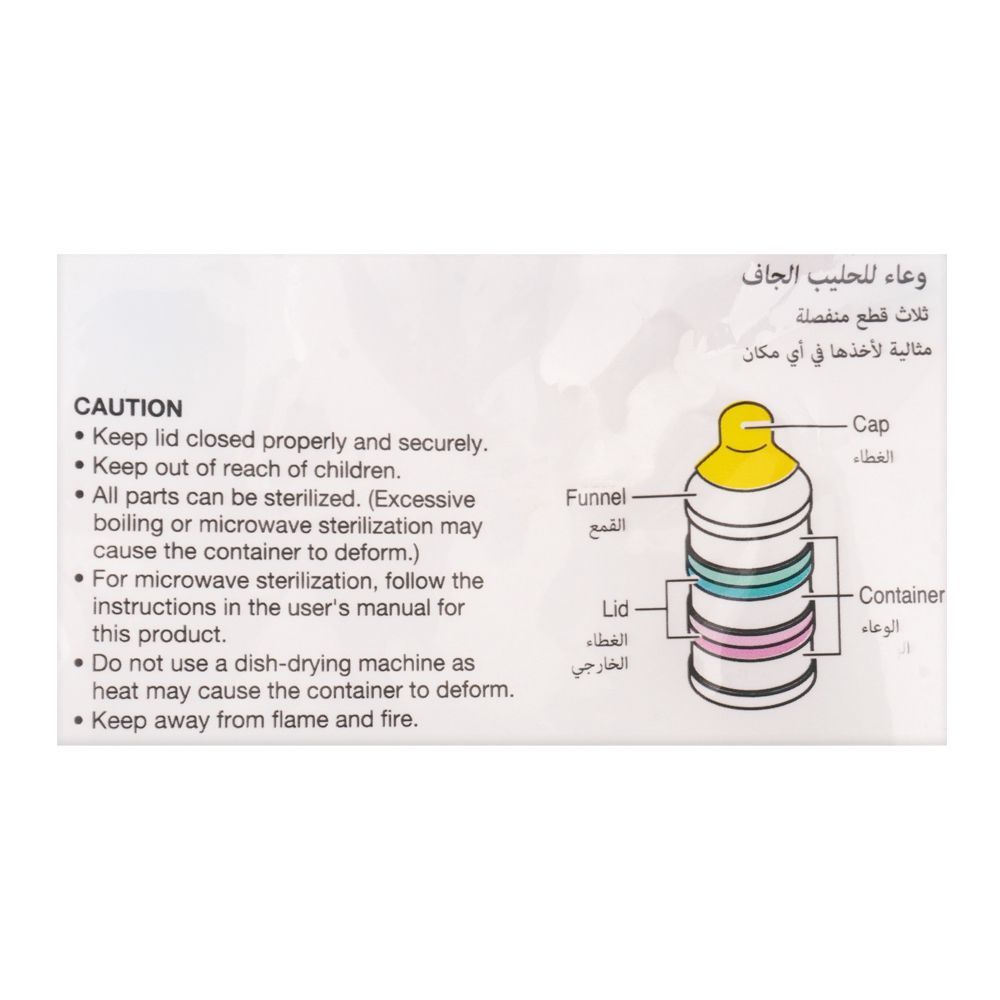 Do you have trouble storing your baby's formula? Does measuring it every single time stress you out? Try the Pigeon Powder Milk Container that has been exclusively created with your travelling needs in mind. The milk powder container is convenient, effICient and colorful. It has three separate sections to store the baby's formula. This feature allows you to prepare for three different mealtimes beforehand.