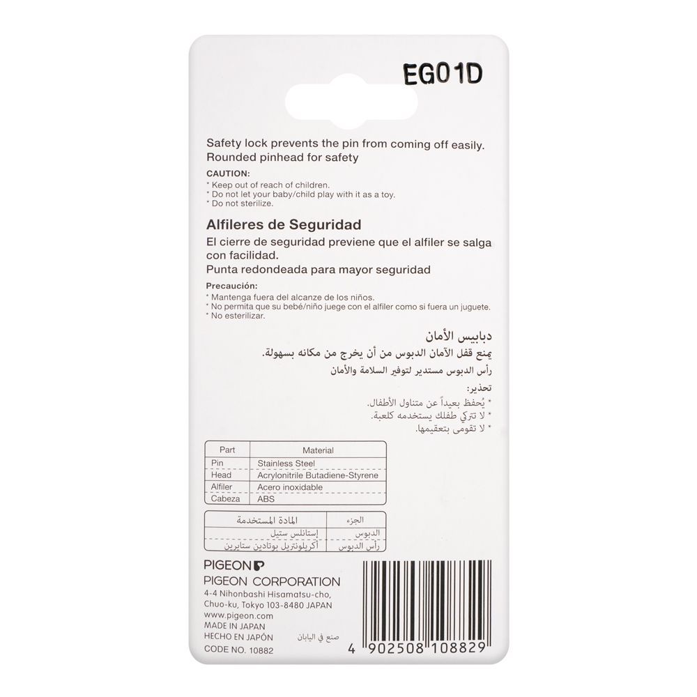 Keeping your baby's diaper well secured doesn't have to be a diffICult task, and neither does tying a napkin to its clothes. You can rest assured that your baby's napkins or diaper is securely fastened with Pigeon Safety Pins, whICh are especially designed to be extremely safe for use. Made from strong and durable stainless steel, the heads of the pins are completely covered with soft plastIC, meaning your baby will be absolutely safe with this product!