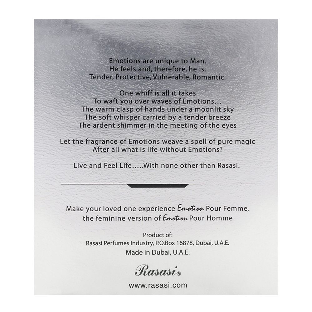 A highly recommended product for men, Rasasi Emotion Homme Perfume 100ml is a woody and spicy fragrance that promises a refreshing start every day. Revitalizing notes like orange blossom and bergamot give it a fresh opening. At heart, it has rose, cinnamon, lavender and violet. The strong scent ends up on the accords like musk, sandalwood, amber, patchouli and tonka. The Eau de parfum comes in an elegant packaging that goes well with every man’s style.